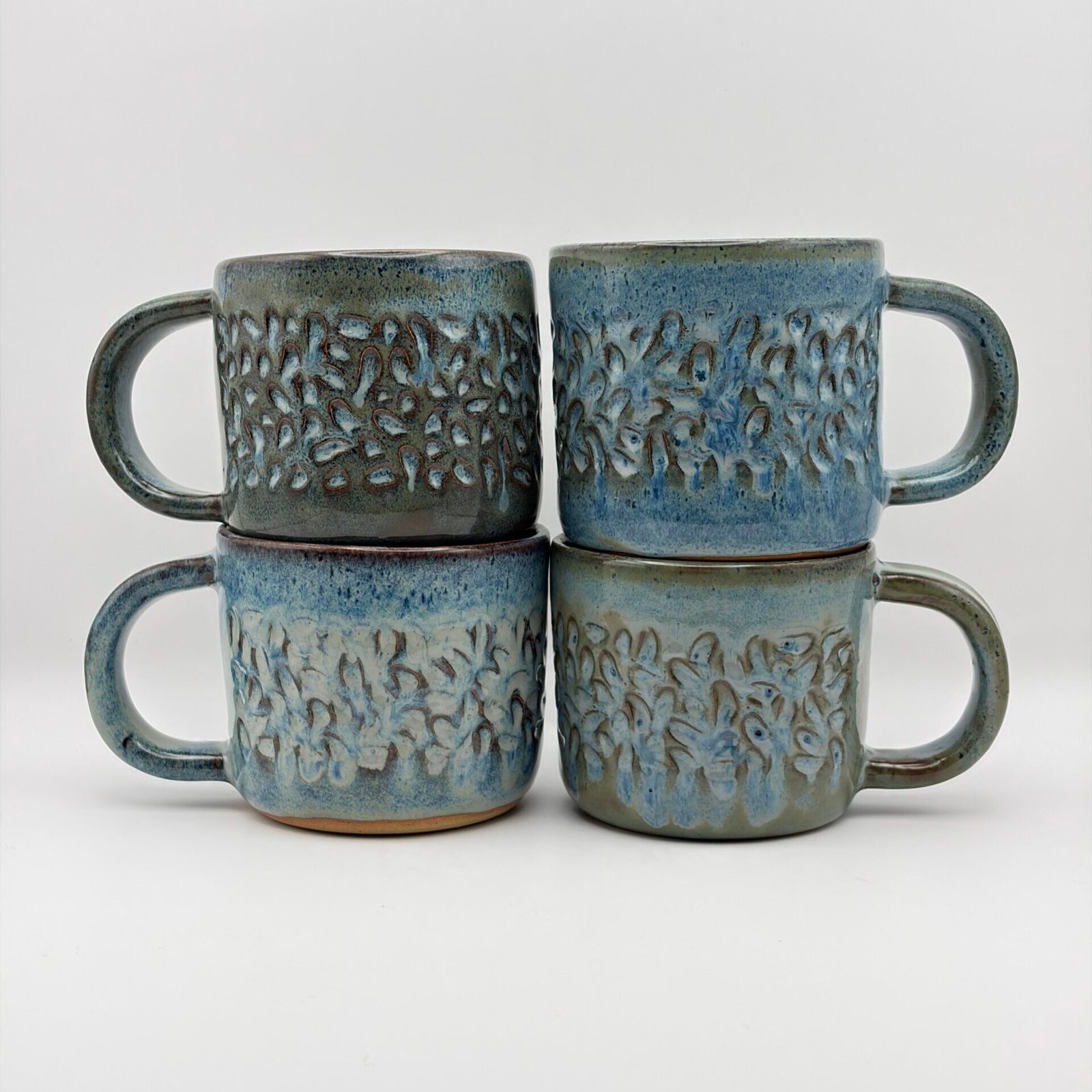 4 x Coffee Mugs. Textured Design. In Blue Rutile.