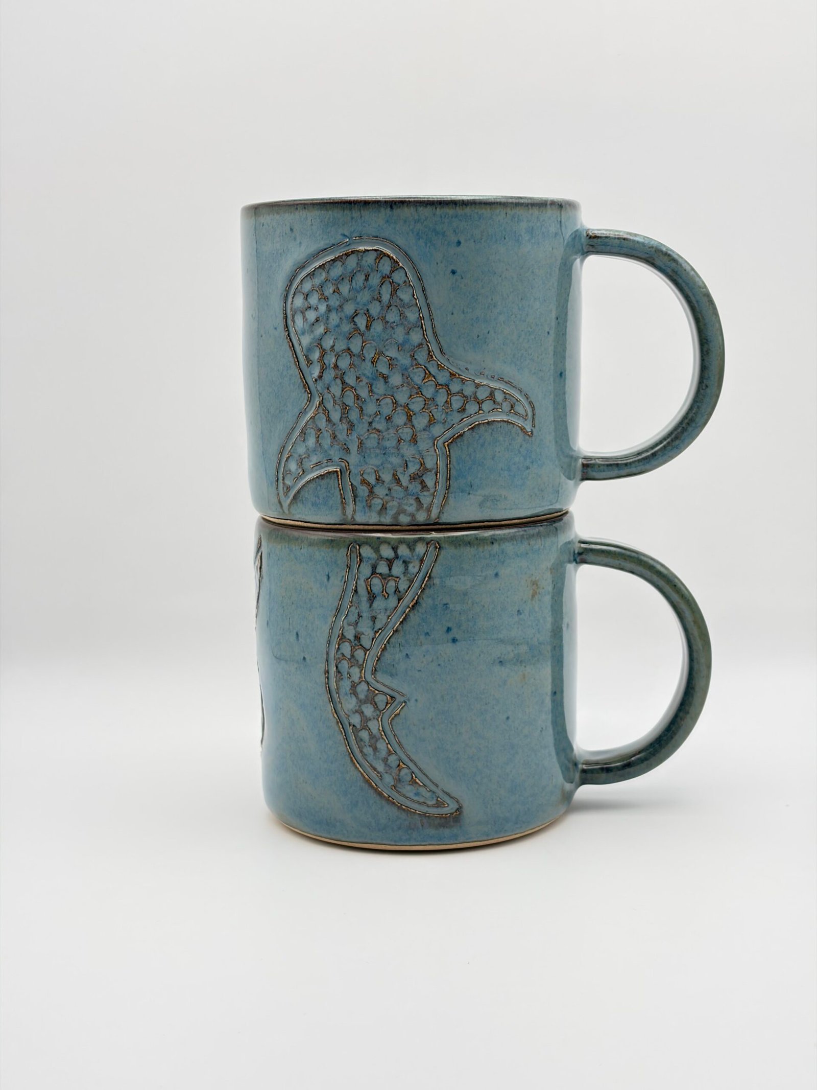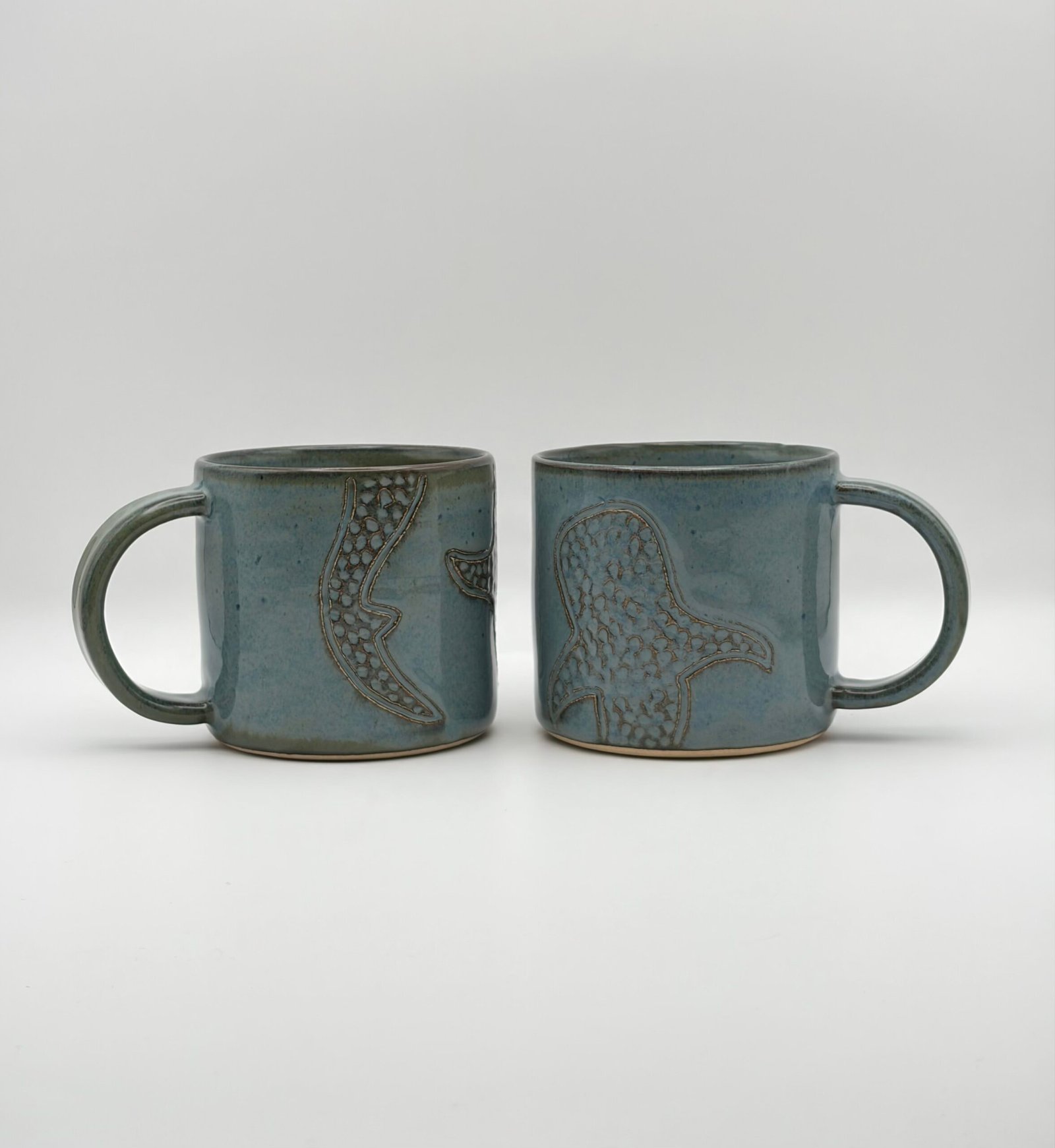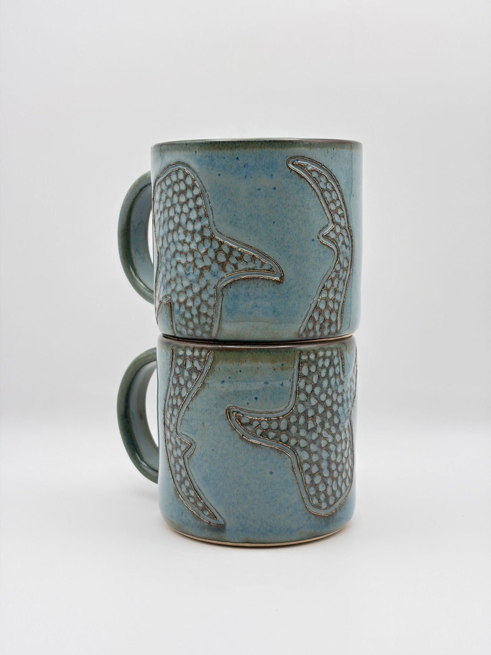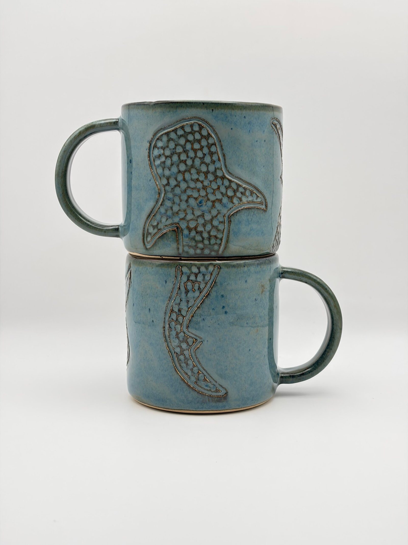 Coffee Mug Pair. Whale Shark Design. Blue Rutile.